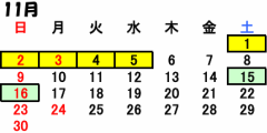 | 11月1日(土)〜5日(水) | 15日(土)〜16日(日) | |