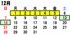 | 12月1日(月)〜5日(金) | 13日(土)〜14日(日) | |