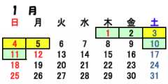 | 令和7年 | 1月1日(祝)〜5日(日) | 11日(土)〜12日(日) |