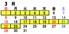 | 3月1日(日)〜5日(木) | 17日(火)〜23日(月) | |