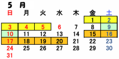 | 5月1日(金)〜5日(祝) | 9日(土)〜10日(日) | |